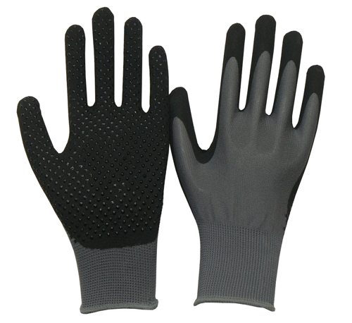| DESCRIPTION | -Double-layered sandy nitrile palm with nitrile dots; water resistant; oilproof -Single-layered sandy nitrile palm with nitrile dots; soft and comfortable -Super grip on oily surfaces, thanks to their special s andy finished nitrile coating -High abrasion resistance |