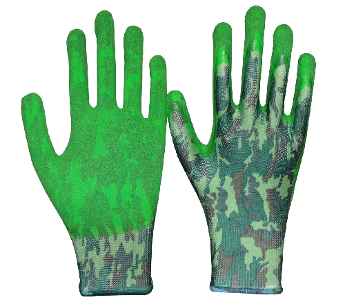 | DESCRIPTION | -13g polyester lining with flower design printing; -Single-layered nitrile coating: soft and comfortable -Super grip on oily surfaces, thanks to their special sandy finished nitrile coating -High abrasion resistance |