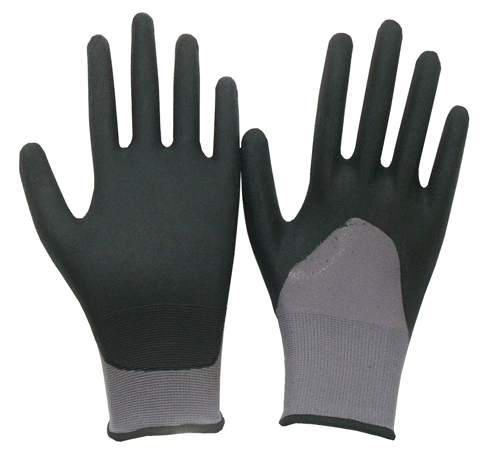 | COMPOSITION | Palm: water-basedPU mixed nitrile 3/4 coating Lining: 15 gaugenylon+spandex lining |