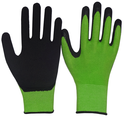 | DESCRIPTION | - 13 gauge seamless bamboo yarns lining; foam latex coating on palm - Good for common mechanical operations andgarden work. - Foam latex provides precision, dexterity and flexibility in assembly appliances. - Elastic knit wrist |