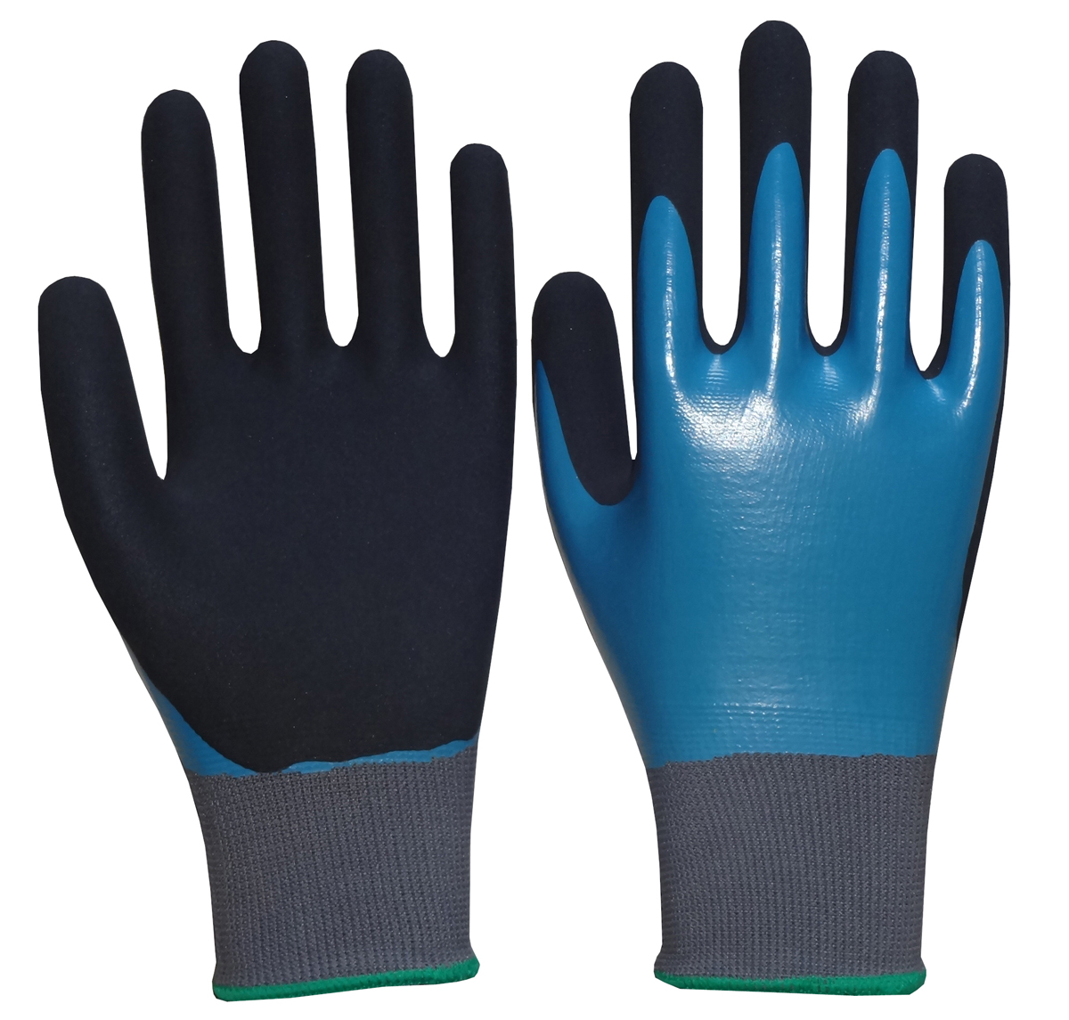 | DESCRIPTION | -15g grey nylon lining; blue smooth nitrile fully coating -Single-layered nitrile palm: soft and comfortable -Super grip on oily surfaces, thanks to their special sandy finished nitrile coating -High abrasion resistance |