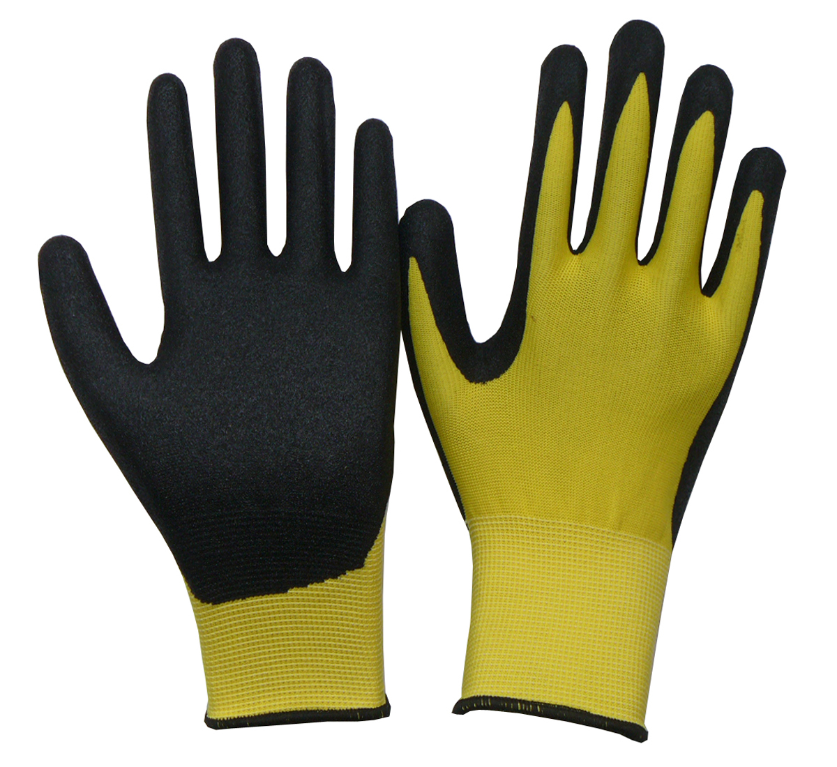 | DESCRIPTION | -Double-layered nitrile palm: water resistant; oilproof -Single-layered nitrile palm: soft and comfortable -Super grip on oily surfaces, thanks to their special sandy finished nitrile coating -High abrasion resistance |