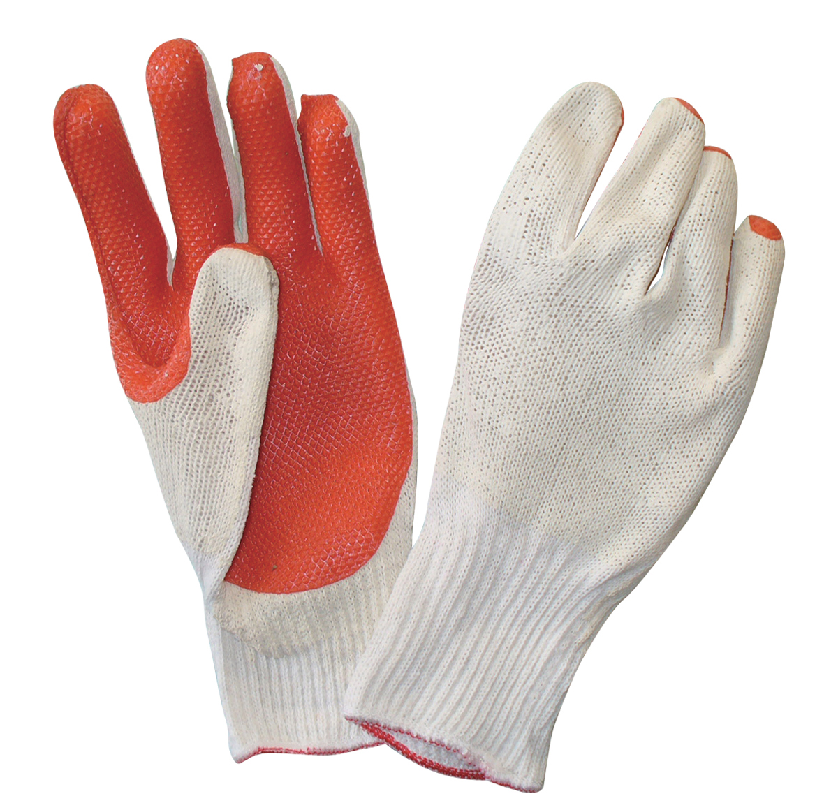 | DESCRIPTION | - 10 gauge seamless bleached white T/C lining; roughlatex layer sticked on palm - Rough latex palm for handling slippery or abrasive objects, and protecting hands against a widerange of hazards - Elastic knit wrist |