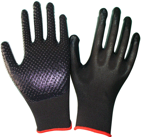 | DESCRIPTION | - 13 gauge seamless polyester lining with PVC dots; nitrile smooth coating on palm - PVC dots enhance excellent grip - Reusable and washable - Elastic knit wrist |