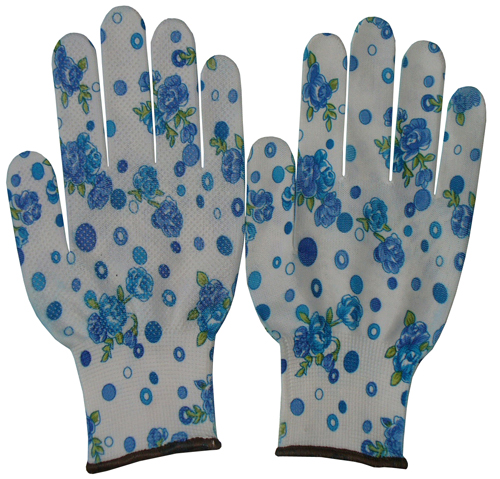 | DESCRIPTION | - 13 gauge seamless polyester with flower printing design; mini PVC dots on palm - Excellent sensitivity and dexterity - Great abrasion resistance - For minimal risks only |