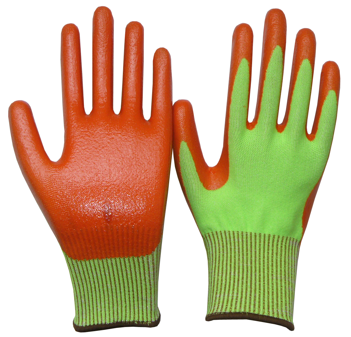 | DESCRIPTION | -13 gauge seamless UHMWPE fibre lining; nitrile coating on palm. - Superior resistance to abrasion and cutprovide safety work; oilproof - Cut level 3 or 5 is available - Elastic knit wrist